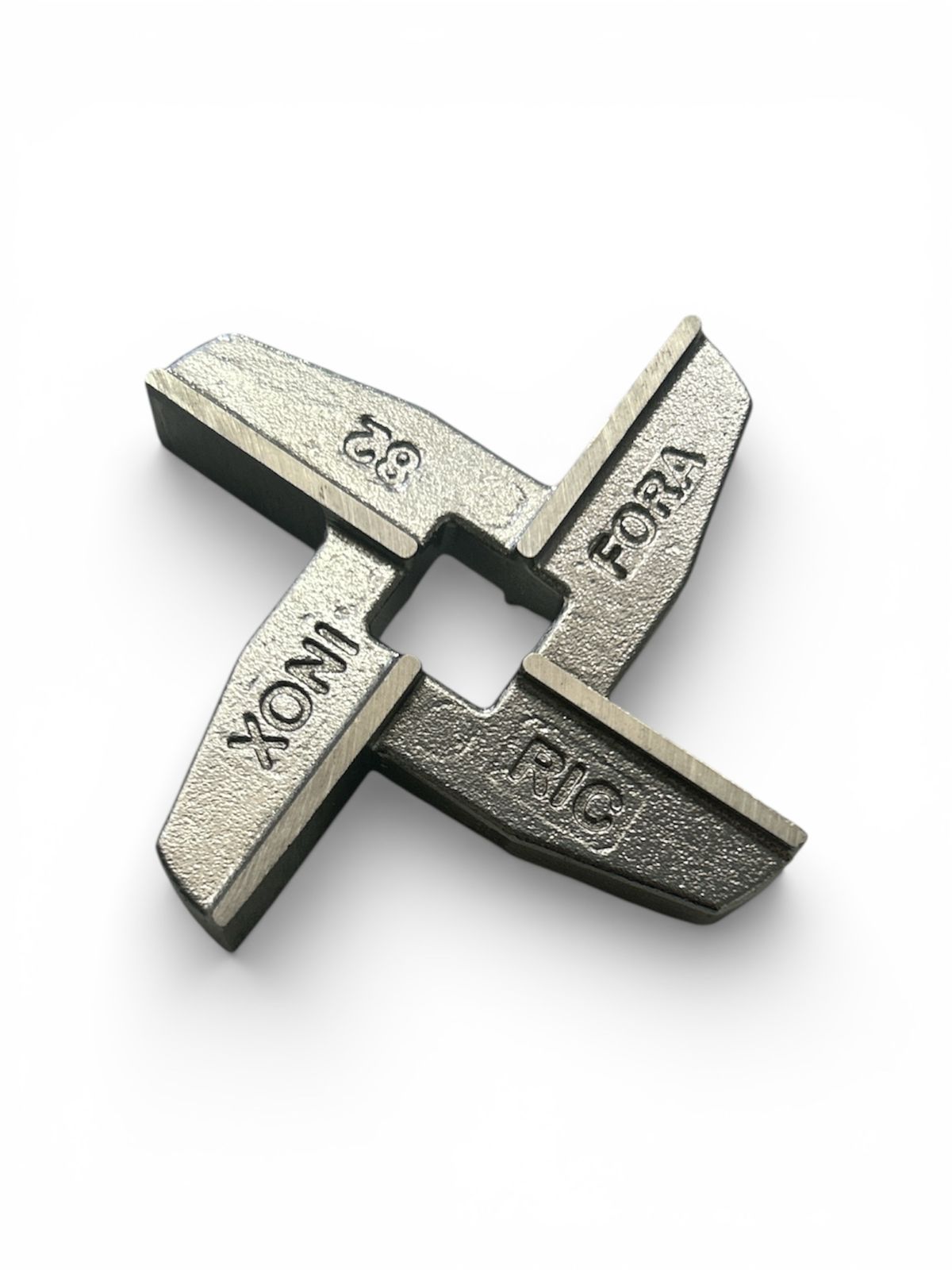 Observação importante: A máquina CAF 82 utiliza 02 cruzetas, sendo uma simple e uma dupla e dois discos de moagem. Caso precise das 4 peças estão disponíveis como KIT na seção peças para moedores de carne.
