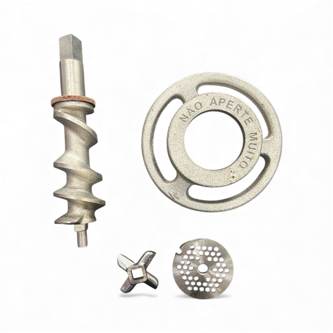 Kit composto com 01 disco com furo de 5mm, cruzeta, volante do bocal e Caracol (sem fim) para moedor Arbel MCR 08.